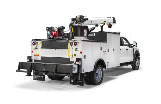 The RM-25 is a mid-duty steel crane body available in 9′ and 11′ lengths, built on a reinforced 6″ understructure with full-height compartments and a protected work deck. It’s rated for cranes up to 5,000 lb (≈25,000 ft-lb) and includes heavy-duty body mounts, integrated outrigger supports, and organized storage for tools and gear.